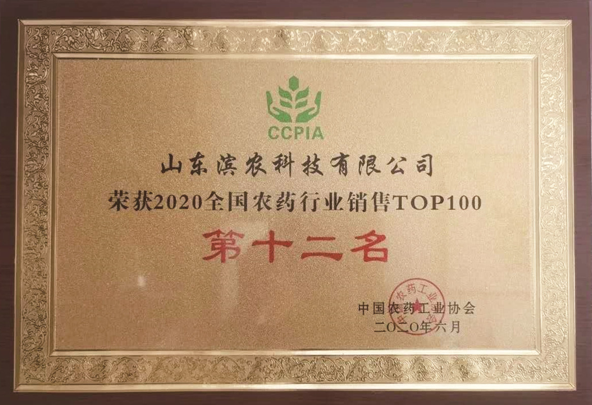 ■2020-06-06 濱農(nóng)科技榮獲“2020全國農(nóng)藥行業(yè)銷售TOP100”第十二名