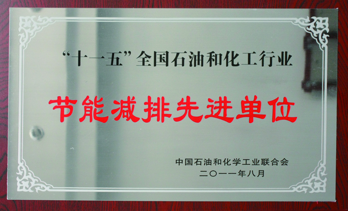 8 月 5 日,由中國石油和化學工業(yè)聯(lián)合會主辦的“全國石油和化工行業(yè)節(jié)能減排工作會議”在北京召開。會上,表彰了“十一五”全國石油和化工行業(yè)節(jié)能減排先進單位、優(yōu)秀服務單位的企業(yè), 我公司榮獲“十一五”全國石油和化工行業(yè)節(jié)能減排先進單位。